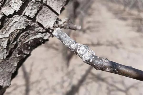 (3)在果树休眠期,用硬毛刷或细钢丝刷,刷掉枝干上的虫体。